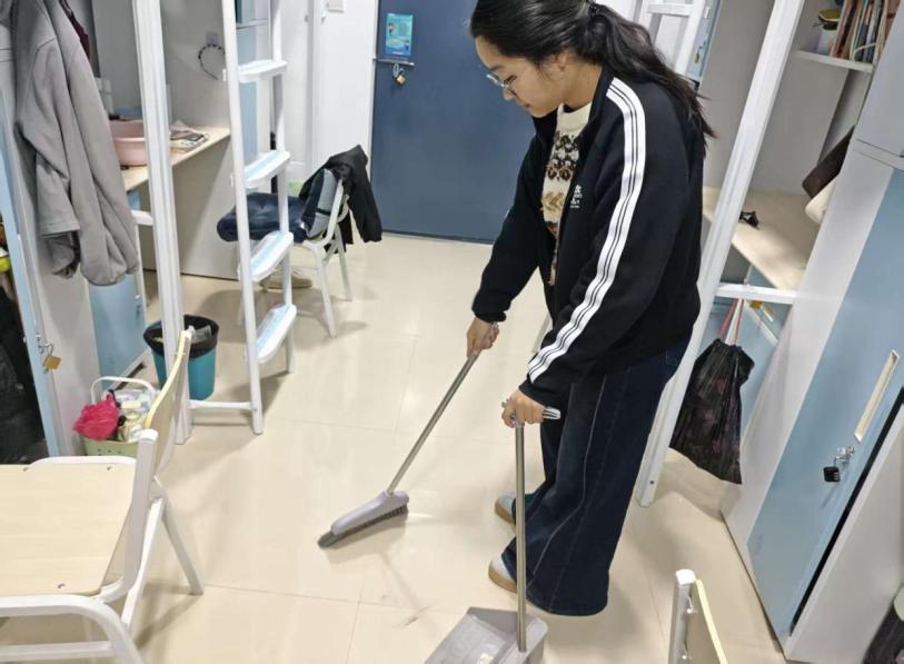 劳动教育的触角还延伸至校园生活的方方面面。中医与康复系以宿舍为单位,开展“我的宿舍我整理”劳动打卡活动,新生们整理内务、清扫地面,整理书桌、收纳衣物,培养自主生活能力。“以前在家很少自己洗衣服、整理房间,现在通过劳动实践,不仅学会了生活技能,也让宿舍变得更温馨了。”新生张同学笑着说。